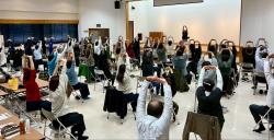 令和7年11月9日に郡山歯科技工士会さんと合同勉強会を行いました。東北歯科技工専門学校教務部長八巻一先生とAMERIDALuu 代表トータルフィットネスインストラクターの猪狩さとみ先生をお招きしての貴重な勉強会でした。午前中は、八巻先生から「見えない力と見える連携~歯科技工士が支える口から食べるという生き方~」という題材で歯科技工士さんの現状これからの歯科の課題と可能性について学びました。